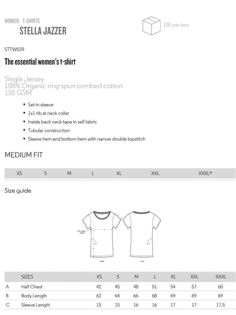 Se Stanley/Stella Fit Guide for passform.